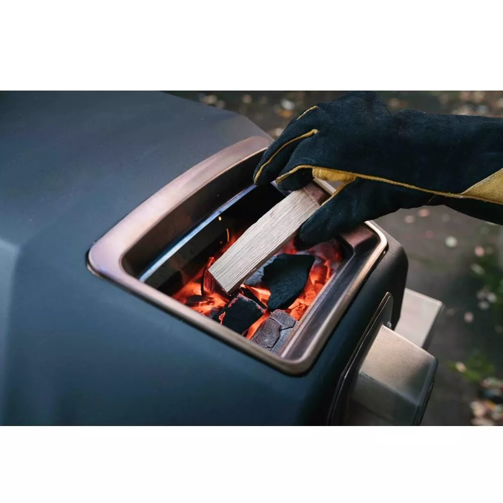 - Mischung von individuell bemessenen Ooni-Premium-Hartholzblöcken aus