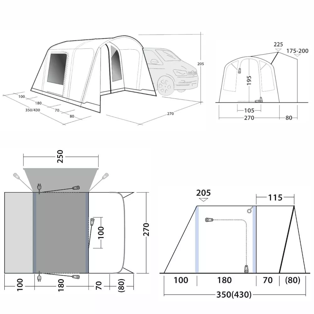 Das aufblasbare und freistehende Buszelt aus der Road Trip Air Collection ist geeignet für Fahrzeuge mit einer Höhe zwischen 175 und 200 cm.