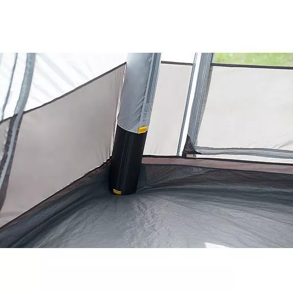 Das Vorzelt ist mit einem fest eingenähtem Boden ausgestattet. Der Zeltboden lässt sich leicht reinigen, hält Insekten fern und reduziert die Kondenswasserbildung im Zeltinneren.