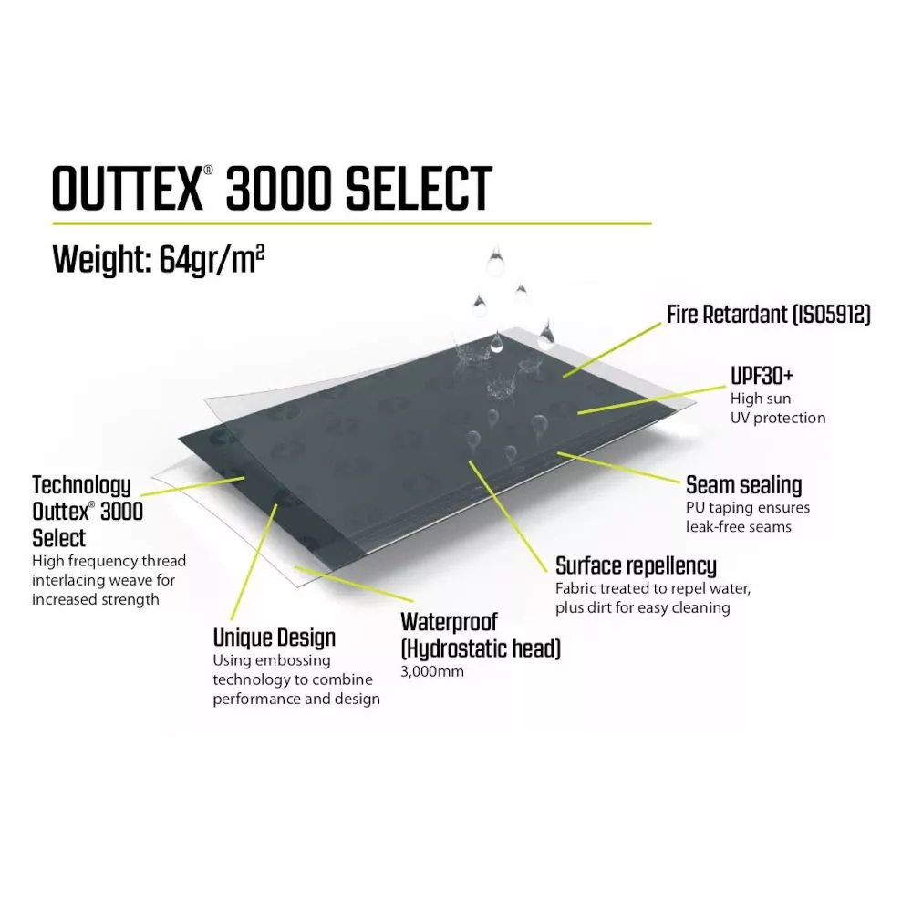 - Material: Outtex 3000 Select, 100% Polyester mit Wassersäule: 3.000 mm
