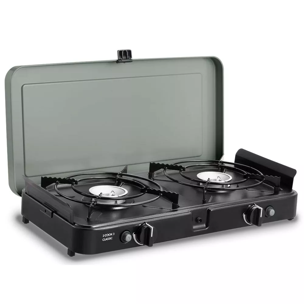 Wenn du auf der Suche nach einem zuverlässigen und vielseitigen Campingkocher bist, dann ist der 2 Cook 3 Classic Stove von CADAC Dometic eine grossartige Wahl. Dieser leichte Campingkocher verfügt über zwei unabhängige Kochseiten mit automatischer Piezozündung, so dass du in kürzester Zeit loslegen kannst! Die Gasknopfsicherung stellt sicher, dass die Gaszufuhr nicht unterbrochen wird. Dies ist ein besonders wichtiger Aspekt, wenn beim Kochen auf dem Campingplatz Kinder in der Nähe sind.