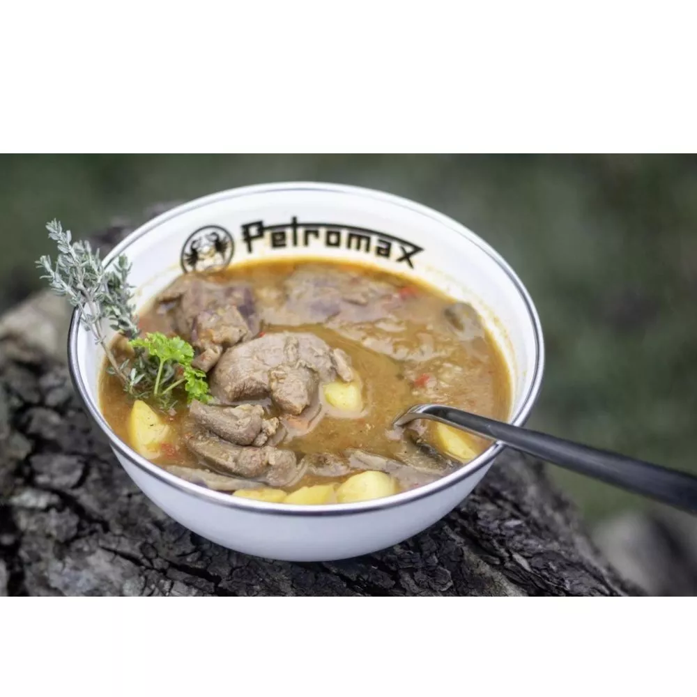 Mit den Emaille-Schalen von Petromax bekommst du ein echtes Leichtgewicht in die Hand. Für heisse und kalte Speisen gleichermassen geeignet, kannst du dein Essen in deiner Draussen-Küche optimal portionieren und anrichten. Die strapazierfähigen, langlebigen Schalen eignen sich für Abenteurer in der Natur ebenso wie für Retro-Fans in der heimischen Küche. Der schützende Rand aus Edelstahl schliesst die Schüsseln hygienisch ab – so kannst du auch direkt daraus trinken.