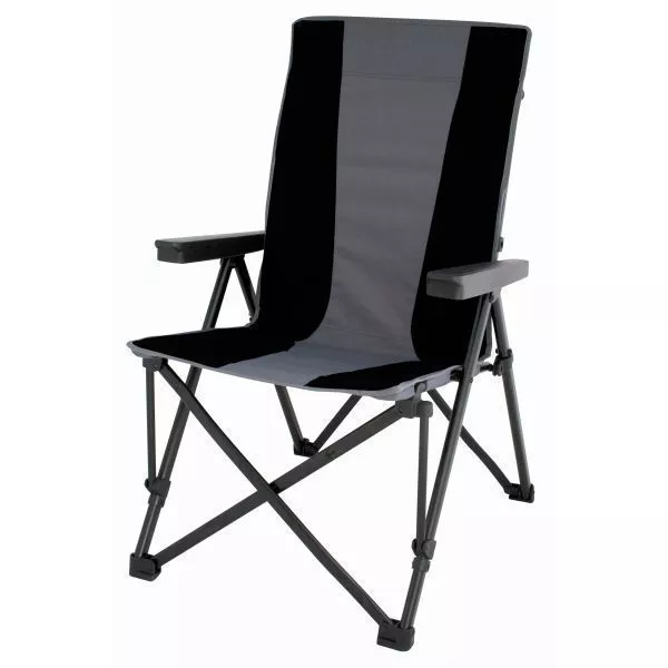 Der Campingstuhl Eurotrail Demu in der Farbe schwarz/grau ist ein sehr robuster Falttstuhl, der dreifach justierbar ist.
