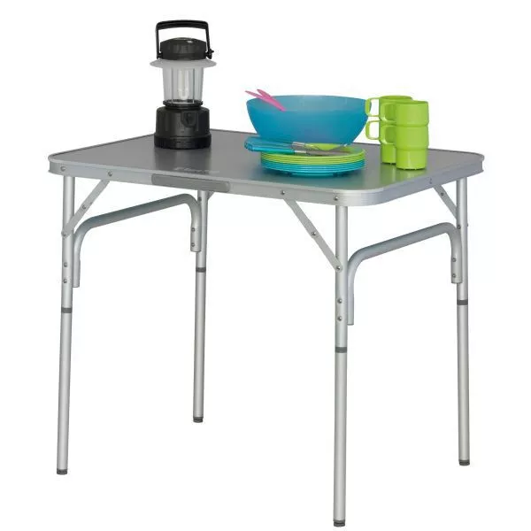 Der Campingtisch Eurotrail Avignon ist bequem zusammenklappbar und besteht aus einer wasserdichten und hitzebeständigen Tischplatte. Der Klapptisch aus Aluminium kann in zwei Höhen verstellt werden.