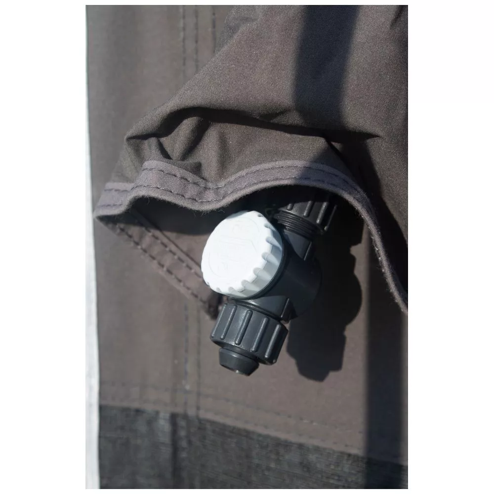 Telta Luftschlauchsystem mit Einpunkt-Aufblassystem – das Vorzelt wird von nur einem einzigen Aufblaspunkt komplett aufgefüllt