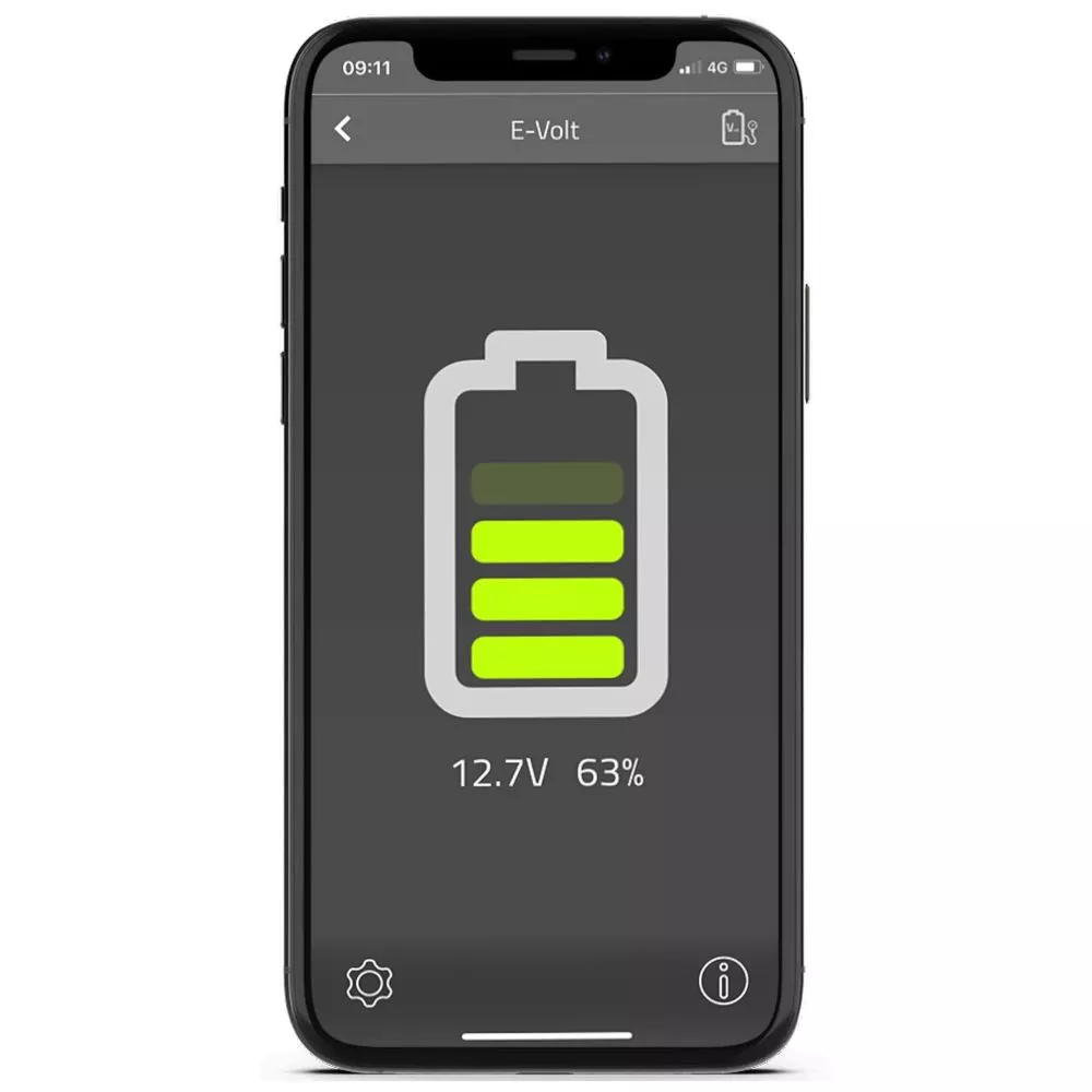Mit dem enthaltenen E-Volt-Modul siehst du auf dem Smartphone auf einen Blick, wie viel Spannung die Bordbatterie deines Wohnmobils oder Wohnwagens gerade liefert. Wenn die Spannung zu niedrig wird, erhältst du eine Warnung in der App, damit du eingreifen kannst. Das E-Volt Modul kann an jeden Batterietyp angepasst werden: Blei-Säure-, AGM oder Lithium-Batterie.