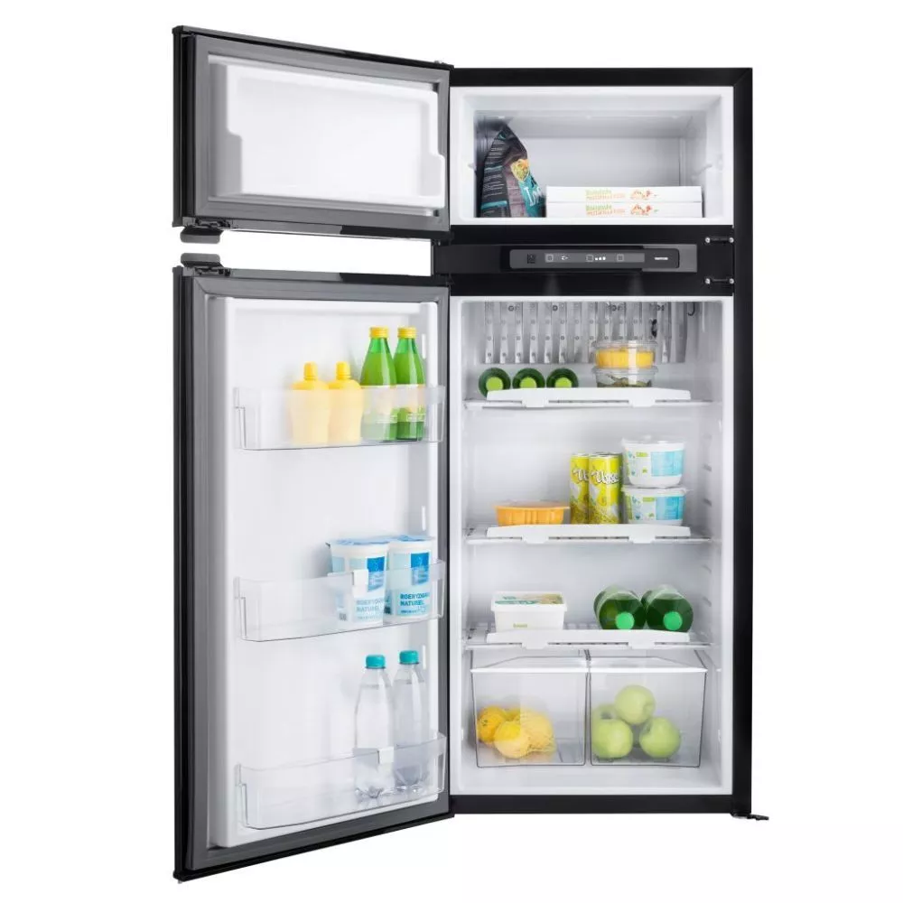 Der Thetford N4175-Automatik ist ein sehr grosser, 2-türiger Absorptionskühlschrank mit separatem 25-Liter-Frosterfach, er versorgt problemlos eine Familie. Der Kühlschrank überzeugt mit LCD-Touchscreen-Bedienfeld. Die gewünschte Energiequelle wird automatisch ausgewählt, die Flamme wird elektrisch entzündet. Die Automatikfunktionen, das Selbstdiagnosesystem und die einfache Inbetriebnahme überzeugen zusätzlich.