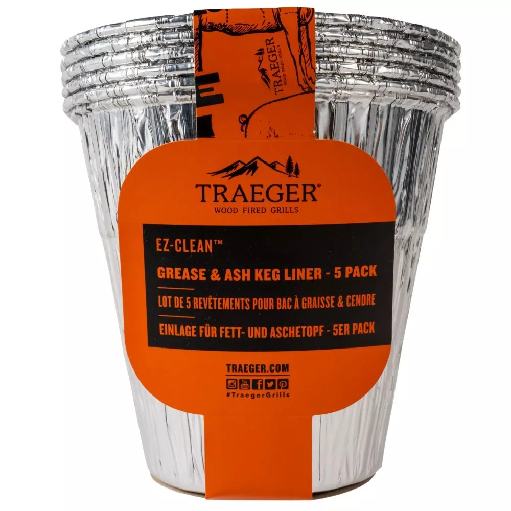 Die Reinigung des Traeger Holzpelletgrills ist mit diesen Einweg-Aluminiumeinlagen für den EZ-Clean Fett- und Aschetopf von Traeger ein Kinderspiel. Der Topf fängt Fett und Asche auf, sodass du beides in einem Schritt entsorgen kannst. Mit diesen Einwegeinlagen ist es sogar noch einfacher. Lege einfach eine neue ein, sobald eine voll ist.