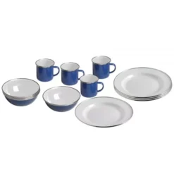 4 x Teller, 4 x Tassen, 4 x Schüsseln - aus hochwertigem Stahl mit Emaillebeschichtung