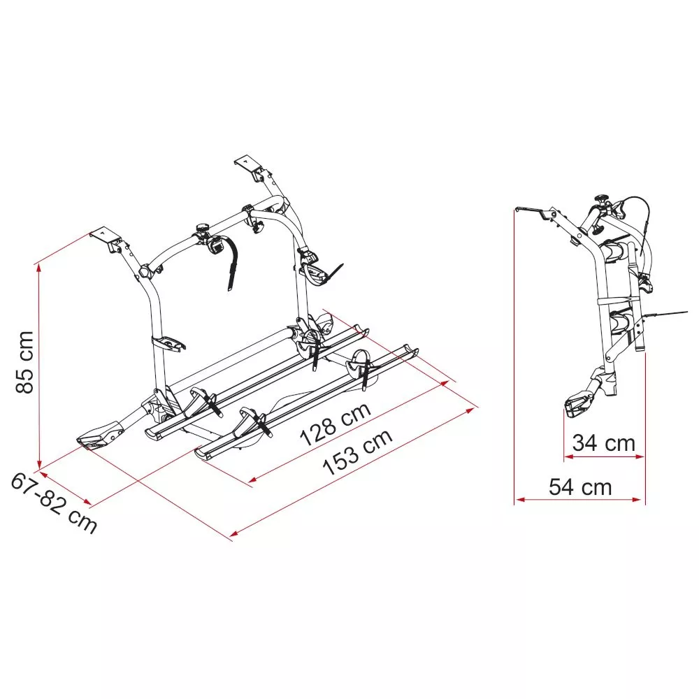 - standardmässig für 2 Fahrräder oder E-Bikes