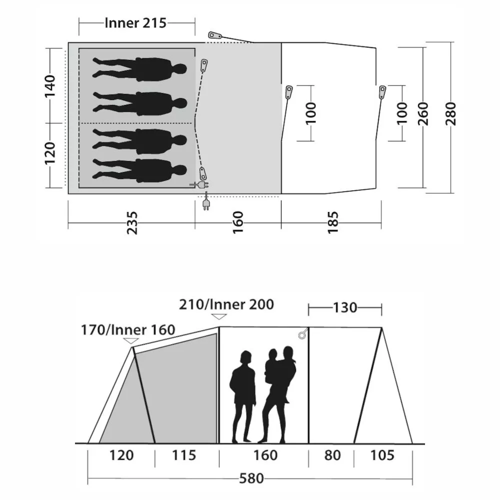 Eine Liegefläche für bis zu 4 Personen hält die 2,15 Meter lange Premium-Schlafkabine bereit. Per Reissverschluss-Trennwand kann der Schlafraum in zwei Schlafkabinen eingeteilt werden. Ideal für Familien mit Kindern und für alle, die mehr Privatsphäre wünschen. Dunkle Decken- und Seitenplanen verringern den Lichteinfall im Schlafbereich und verbessern die Schlafqualität. Für noch mehr Schlafkomfort sorgt der einstellbare Luftstrom aus Netzstoff-Lüftungsöffnungen.