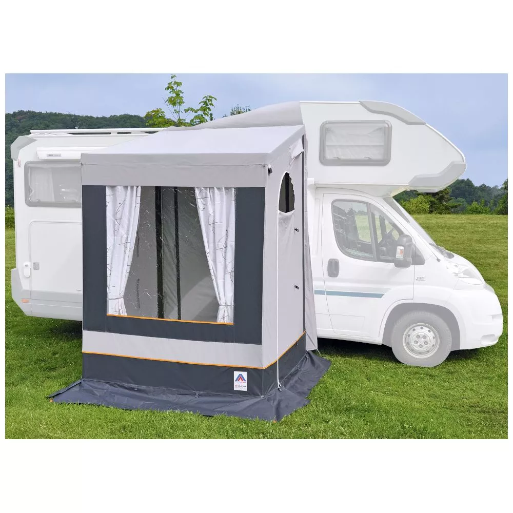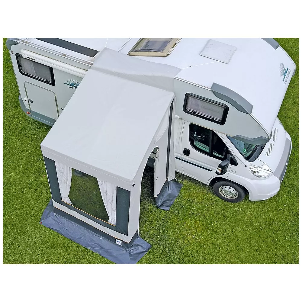 Das freistehende Wintervorzelt Hahn Zelte Bernina eignet sich hervorragend für Reisemobilcamper und ist ideal für Fahrzeuge mit einer Höhe zwischen 270 und 300 cm. Durch die am Zeltdach angenähte, 60 cm lange Überwurflasche, die auf dem Fahrzeug befestigt wird, lässt sich das Zelt im Handumdrehen entfernen. Somit wird dir grösstmögliche Flexibiltät geboten, um jederzeit das Vorzelt stehen zu lassen und kurz mit dem Fahrzeug einkaufen oder zur Skipiste fahren zu können.