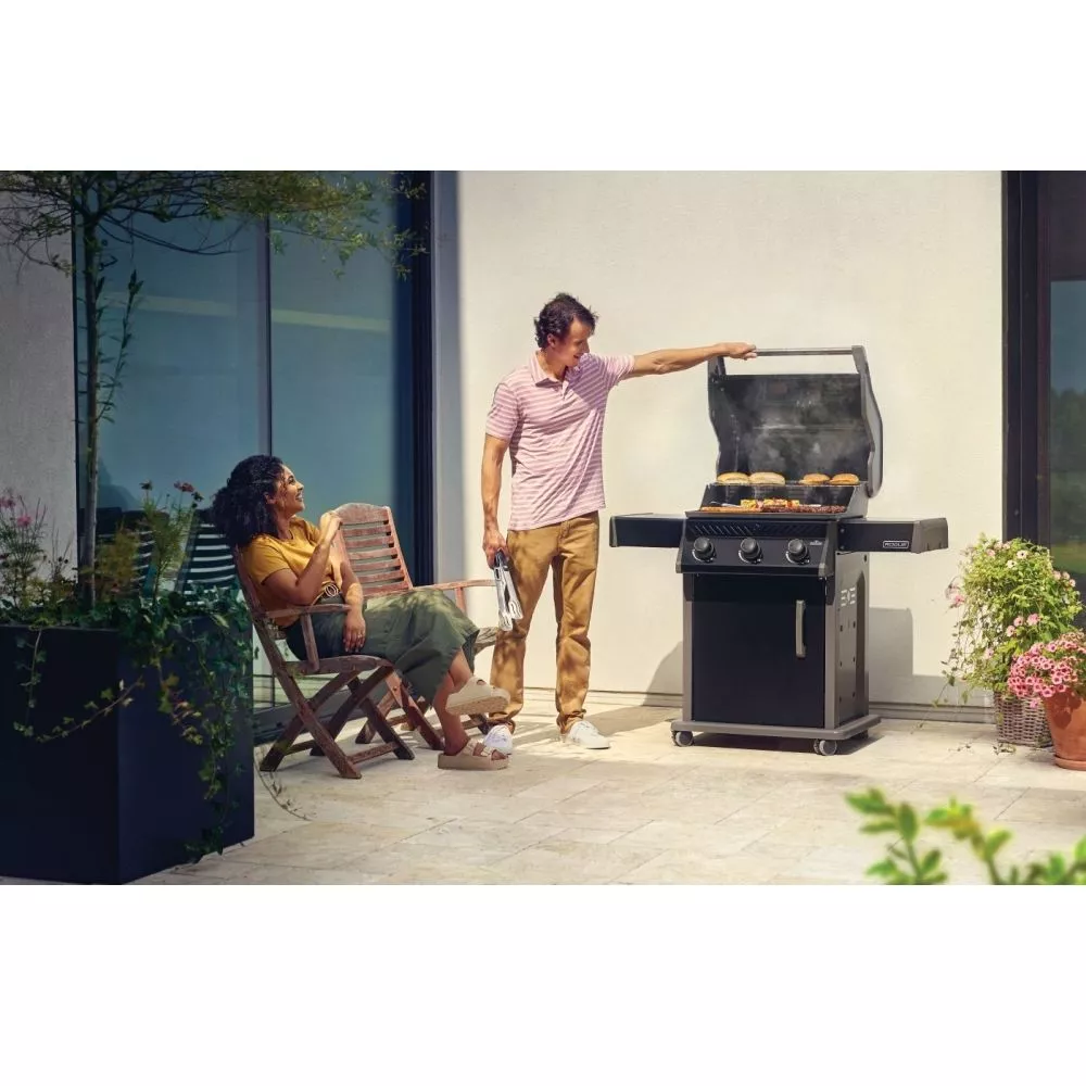 Mit drei massiven Edelstahlbrennern, die sofort zünden, und einer mühelosen Temperaturregelung sorgt er für perfektes Grillen oder Braten.