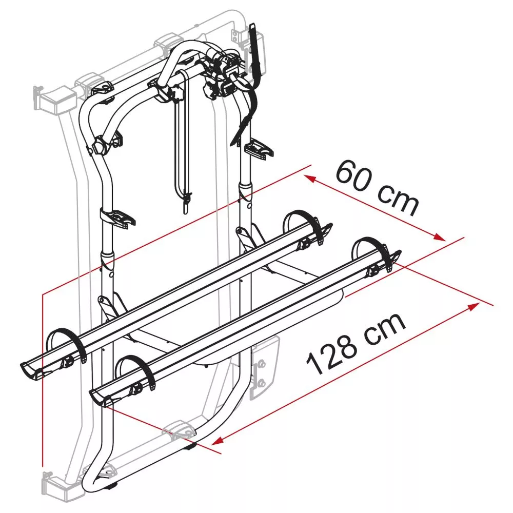 Standardmässig können 2 Fahrräder oder E-Bikes transportiert werden. Bei Bedarf kann der Träger allerdings jederzeit für den Transport von 3 Velos aufgerüstet werden. Die Quick-Lock Sicherheitsriemen und das Bike-Block Arretiersystem sorgen dabei unterwegs für einen sicheren Halt deiner Räder.