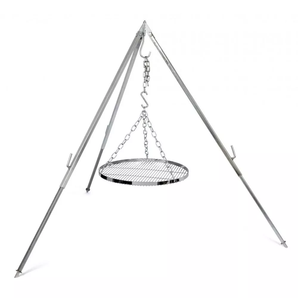 Mittels der drei stabilen Ketten wird der verchromte Stahlrost mit einem Handgriff an deinen Dreibeinhaken gehängt und ist direkt einsatzbereit. Den Abstand zu deiner Kochstelle regelst du dabei bequem über die Kettenlänge des Dreibeins. Durch die natürliche Pendelbewegung wird deine stärkende Mahlzeit immer nur in Intervallen den lodernden Flammen ausgesetzt und gart damit schonend.
