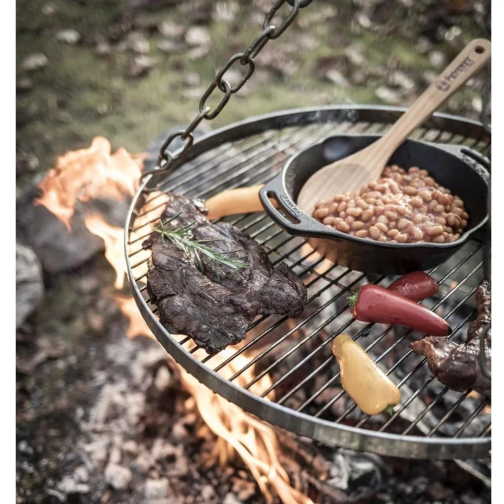 Steaks, Filets und sogar Gemüse nehmen das intensive Aroma des Holzfeuers an und bekommen durch die Roststruktur das typische Grillmuster, bleiben dabei aber besonders saftig. Der erhöht umlaufende Rand des Hänge-Rostes schützt zeitgleich vor dem Herabfallen der Speisen. So kannst du deiner Grillfläche noch einen zusätzlichen Schwung geben und in den Genuss des Schwenkgrillens kommen. Mit einer Fläche von 50 cm im Durchmesser hast du auch ausreichend Platz für die feurigsten Fleischgerichte und füllst so einige hungrige Mägen.