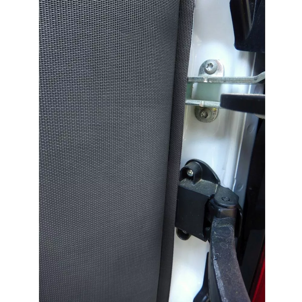 Engmaschiges, flammhemmendes Polyestergewebe sorgt für Luftzirkulation und eine sehr gute Sicht nach draussen. Das Netz schirmt bis zu 65% der Sonnenstrahlen ab und reduziert somit die Hitzeentwicklung im Fahrzeug deutlich.