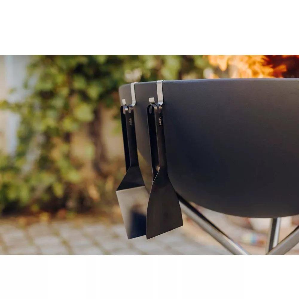 Beim Grillen auf der Plancha darf der Spachtel von höfats nicht fehlen. Inspiriert von der japanischen Teppanyaki Grillkunst, gibt es kein Gericht, bei dem dieses Grillbesteck nicht assisiteren kann. Wenden, Zerteilen und Verrühren zählen zu seinen Spezialgebieten und selbst bei der Reinigung der Plancha ist er zu Diensten. In den Grillpausen kannst der Spachtel sicher an einem Haken an der Feuerschale, am Grill oder in der Küche aufgehängt werden und ist so immer bereit für seinen nächsten Einsatz.