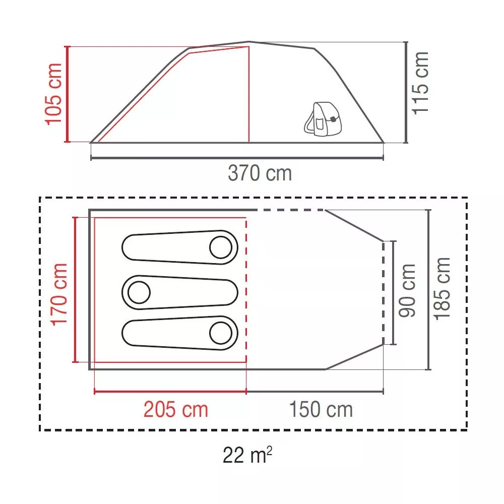 Aussenzelt: Polyester, PU überzogen, feuerhemmend, Wassersäule: 2.000 mm