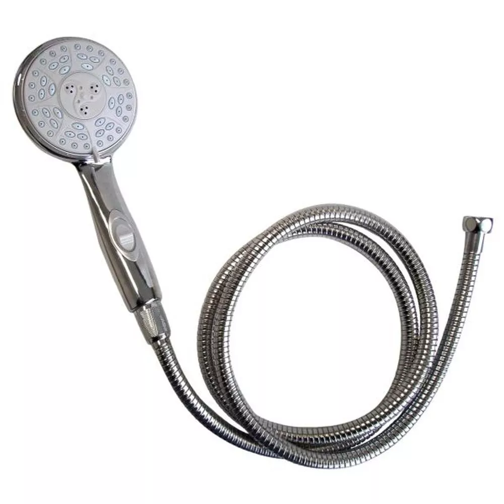 Erlebe ultimatives Duschvergnügen mit dem LILIE Duschbrause-Set! Der integrierte Wasserabstellknopf am Brausekopf ermöglicht eine einfache Wasserersparnis, ohne auf Komfort zu verzichten. Geniesse die 5-fach verstellbare Massagefunktion für eine individuell anpassbare Dusche. Die Reinigung ist ein Kinderspiel. Der 1,5 m lange, verchromte Schlauch, der Wandhalter und das Befestigungsmaterial sorgen für eine mühelose Installation. Beidseitiger Anschluss von 1/2 Zoll.