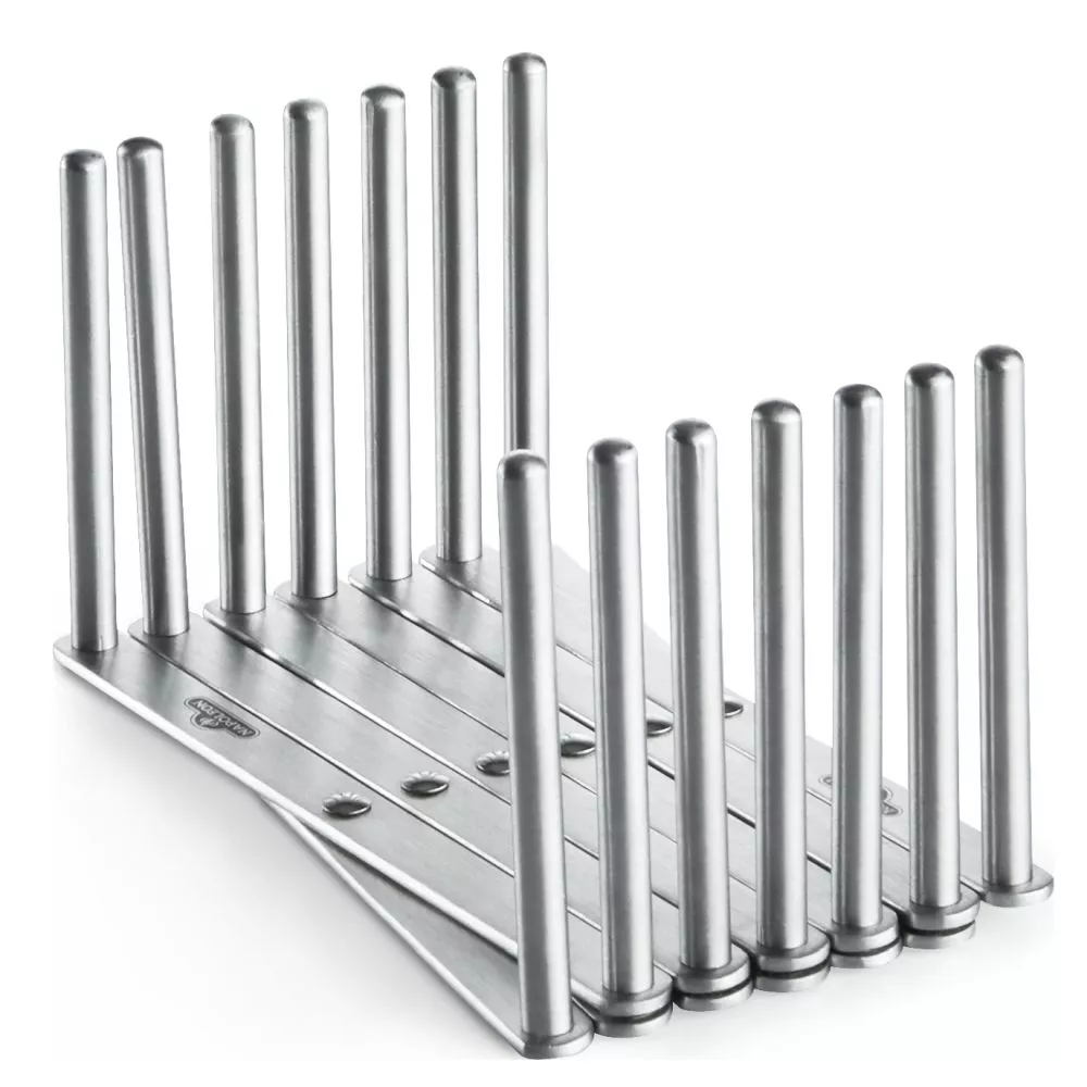 Dieser praktische Edelstahl Sparerib-Halter hält bis zu 6 Rippchen gleichzeitig. Dank der faltbaren Konstruktion kann die Grösse je nach Art der Spareribs angepasst werden und ermöglicht so auch ein platzsparendes Aufbewahren.