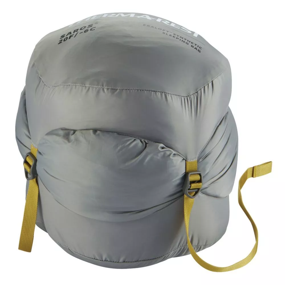 Der Schlafsack Therm-a-Rest Saros 20F/-6C ist ein warmer, leichter und voll ausgestatteter Kunstfaserschlafsack ideal für Camping- und Outdoorabenteuer.