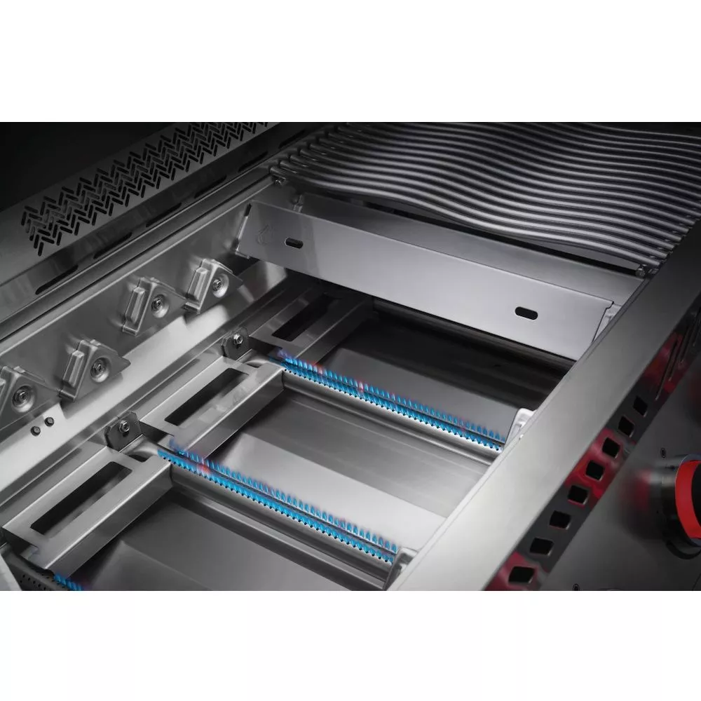 Das JETFIRE-Zündsystem zündet die Brenner schnell und zuverlässig mit einem Flammenstrahl an. Genieße das Ambiente und die Sicherheit, dank der Safety Glow Regler. die in einem eindrucksvollen Blau leuchten und zu Rot wechseln, sobald die Brenner aktiviert werden.