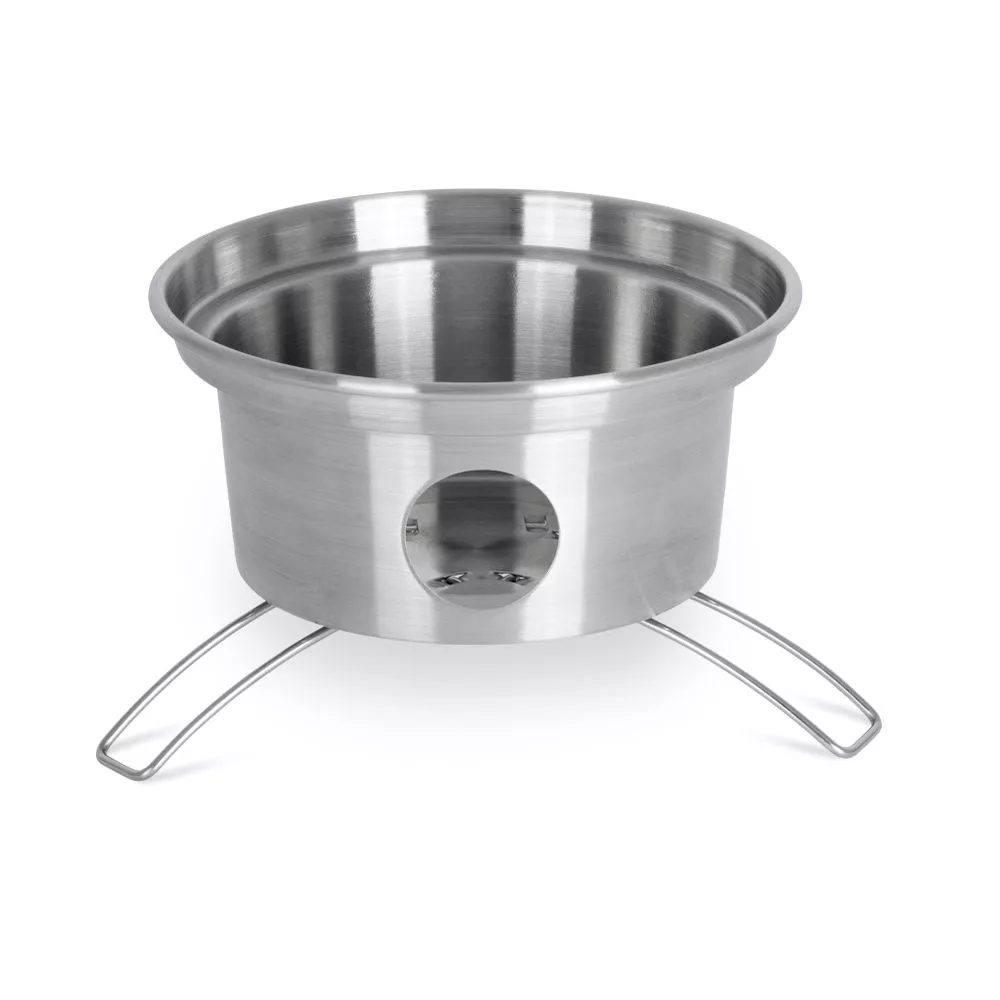 Neben Wasser heizt die Feuerkanne auch dein Kochgeschirr ein. Der in der Kannenöffnung fixierbare Kochaufsatz bietet Platz für kleine Töpfe und Kessel. Die an der oberen Öffnung entweichende Wärme kann dabei genutzt werden, um kleine Mahlzeiten zu erhitzen.