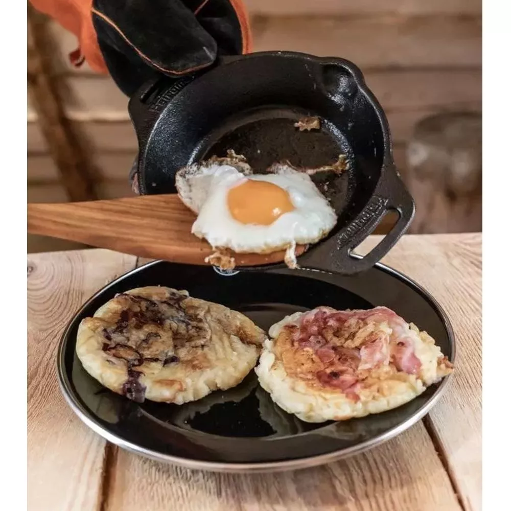 Ob saftiges Fleisch, herzhafte Pfannkuchen oder gegrilltes Gemüse: Die Petromax Emaille Teller eignen sich perfekt, um all deine Lieblingsgerichte stilvoll zu servieren. Dank ihrer gebrannten Oberfläche sind die robusten Leichtgewichte hitzebeständig und kratzfest. Der Edelstahlrand sorgt zudem für eine besondere Stossfestigkeit. Der hochwertige Rand macht die Teller widerstandsfähig und robust. Die bewährte Verbindung aus Glas und Stahl macht die Petromax Emaille Teller zur perfekten Ergänzung für deinen nächsten Campingausflug.