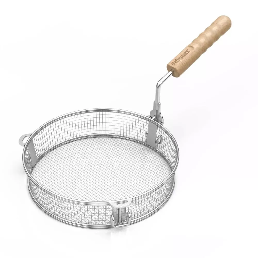 Der Frittierkorb erweitert die vielfältigen Anwendungsmöglichkeiten des Feuertopfs und verbindet diese mit den einzigartigen Röstaromen des gusseisernen Topfes. Die Randaufhängung am Feuertopf sorgt für ein verbessertes Abtropfen, während der abnehmbare Holzgriff Flexibilität und eine mühelose Aufbewahrung ermöglicht.