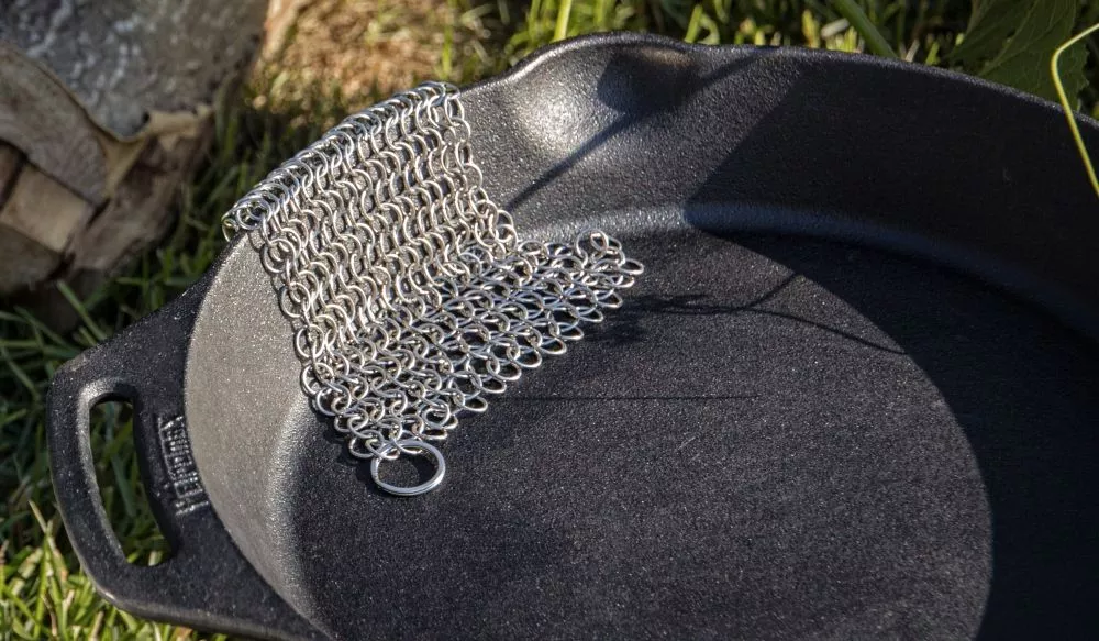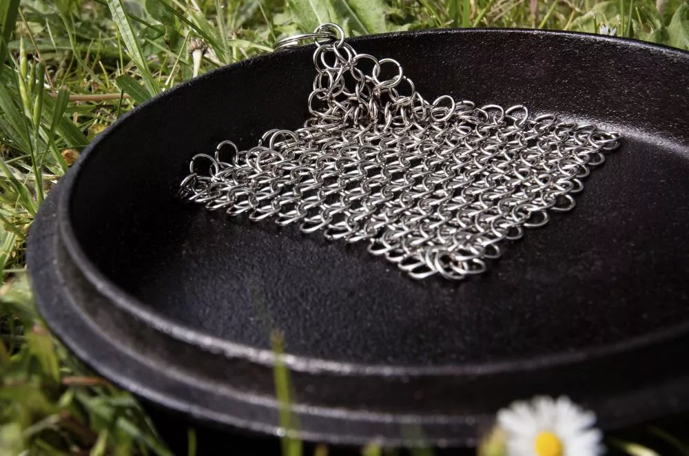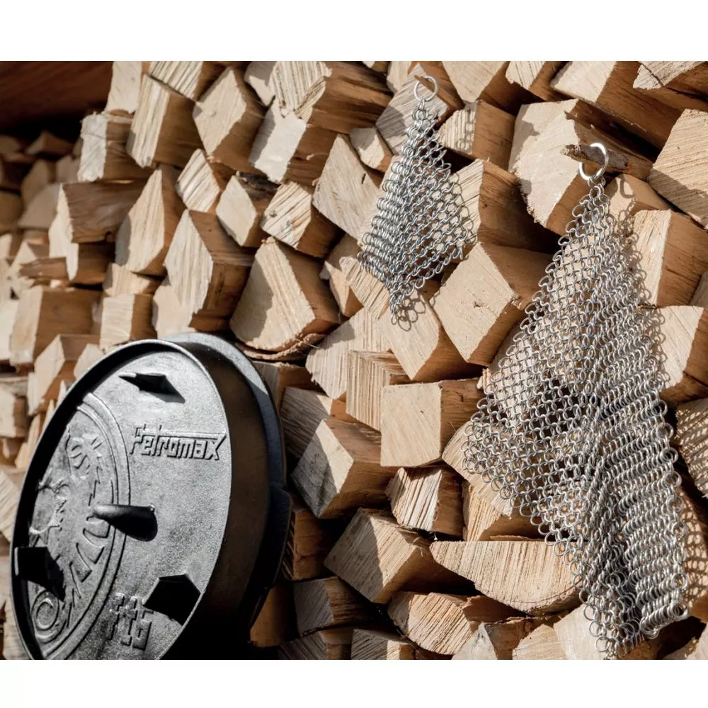 Dieses hochwertige und strapazierfähige Utensil aus Edelstahl reinigt mühelos Gusseisen, Schmiedeeisen und Edelstahl ohne die wertvolle Patina zu beschädigen. Das Kochgeschirr einfach abkühlen lassen und mit warmem Wasser schonend die angebrannten Essensreste abreiben. Spülmittel wird nicht benötigt. Nach dem Säubern nochmals abspülen und vor dem Verstauen gut abtrocknen, sonst ist Kontaktkorrosion möglich.