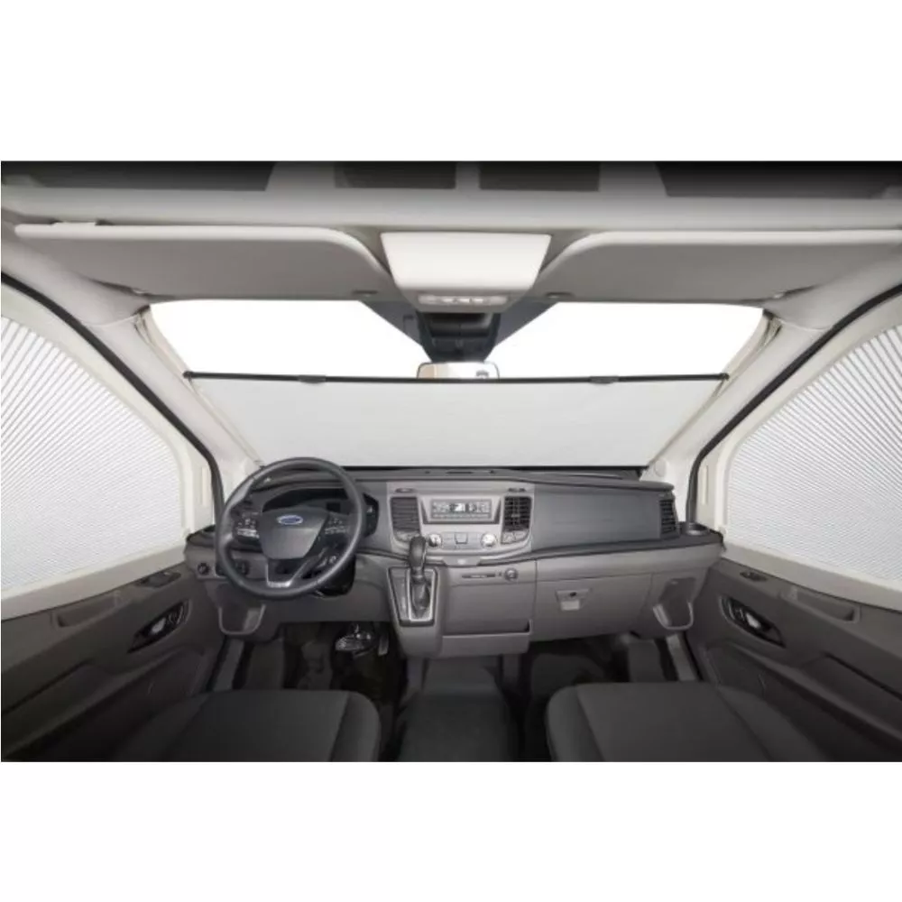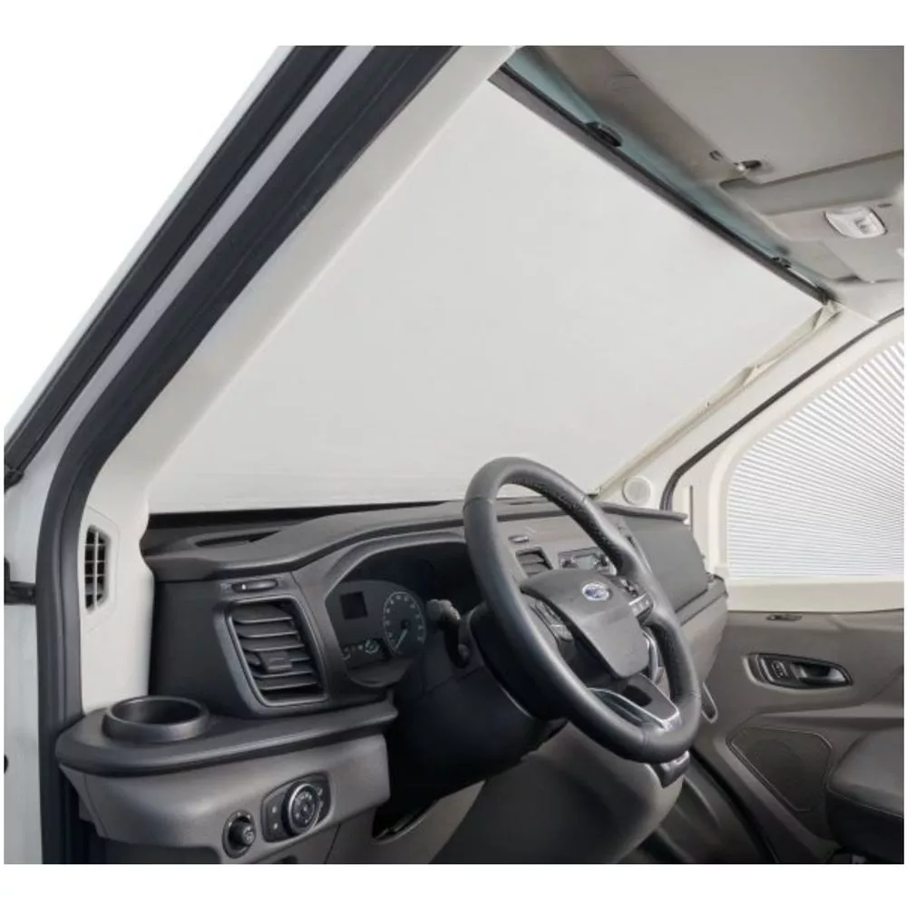 Die doppelt plissierte Frontscheibenverdunkelung Dometic FR 400 wurde speziell für den Ford Transit (V363) ab dem Facelift Baujahr 2019 enwickelt.