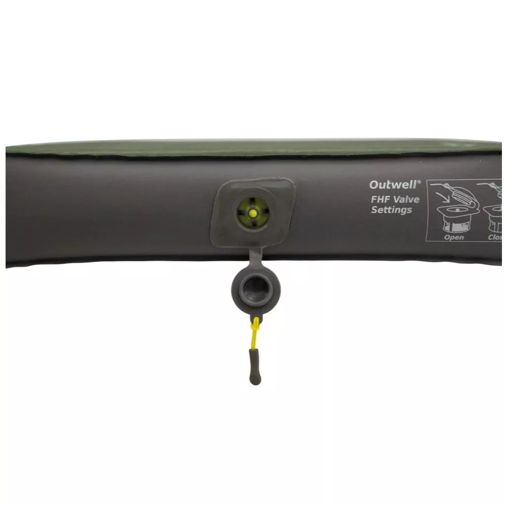 Die Liegematte Outwell Dreamhaven Double ist mit dem Outwell FHF Ventil ausgestattet – einem flachen Ventil, das sowohl beim Aufblasen als auch beim Ablassen der Luft einen hohen Luftstrom garantiert. Die Liegematte bietet nicht nur eine herausragende Leistung zu einem guten Preis. Dank der 3D-Form mit tiefem Profil überzeugt die Liegematte auch mit einem erstklassigen Komfort. Das 3-D- Profil wird durch Seitenwände aus Textil gestützt, die sich unter Druck nicht durchbiegen. Dadurch muss weniger Luft zugeführt werden, was wiederum das Aufblasen erleichtert. Gewicht und Packmass werden durch die horizontalen Luftkanäle zusätzlich reduziert. Die Tragetasche sorgt für eine problemlose Aufbewahrung und einen mühelosen Transport.