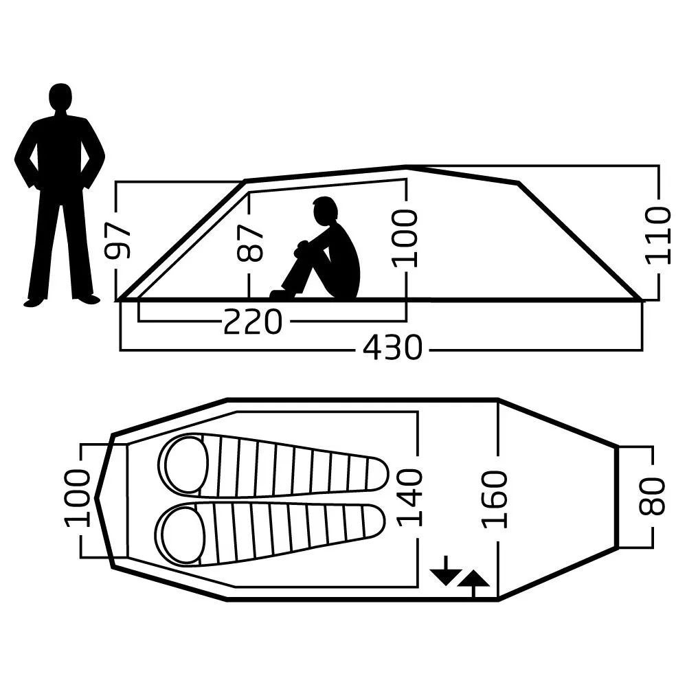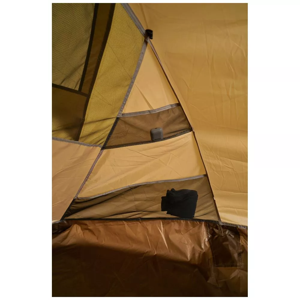 Im Inneren gibt es viel Platz für zwei Personen mit Ausrüstung und viel Equipment. Es gibt mehrere Staufächer und Aufhängungsmöglichkeiten – und der Vorraum bietet zusätzlichen Platz zum Lagern und Kochen. In Verbindung mit der passenden Zeltunterlage kann der Vorraum auch als zusätzlicher Wohnbereich genutzt werden.