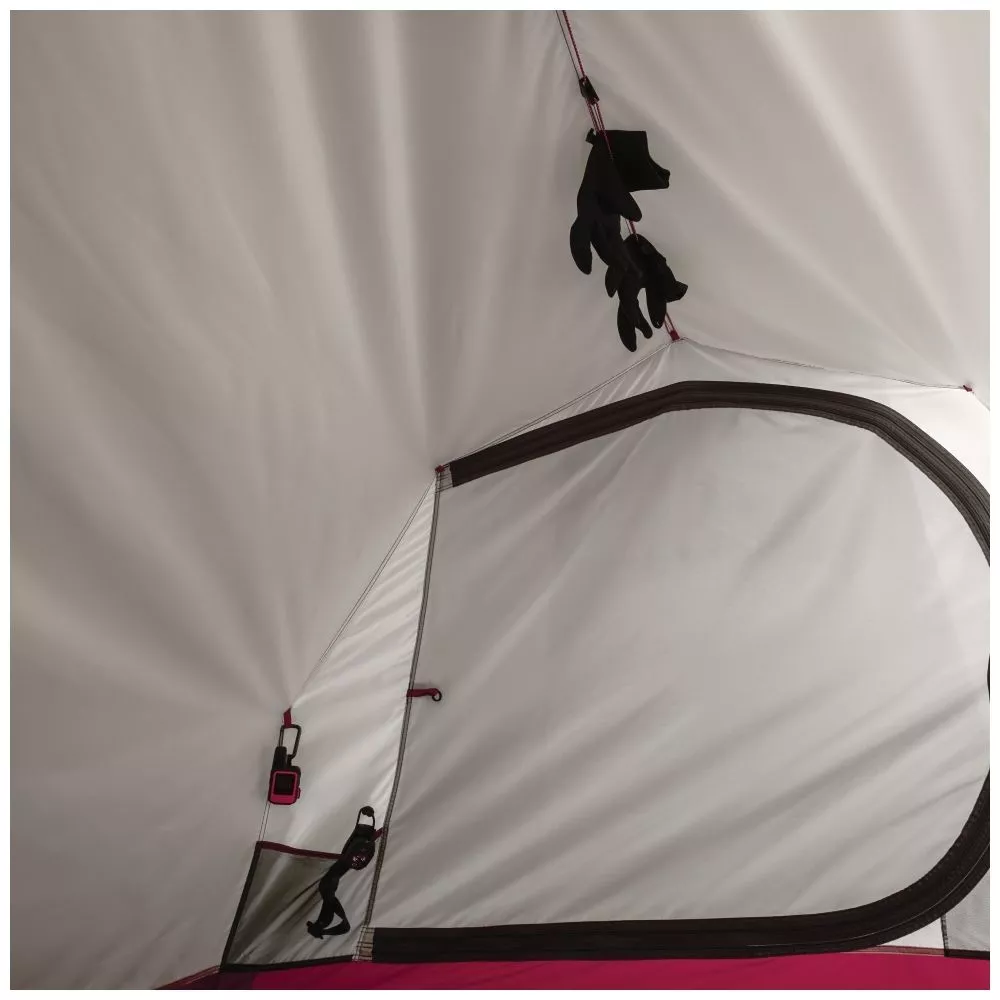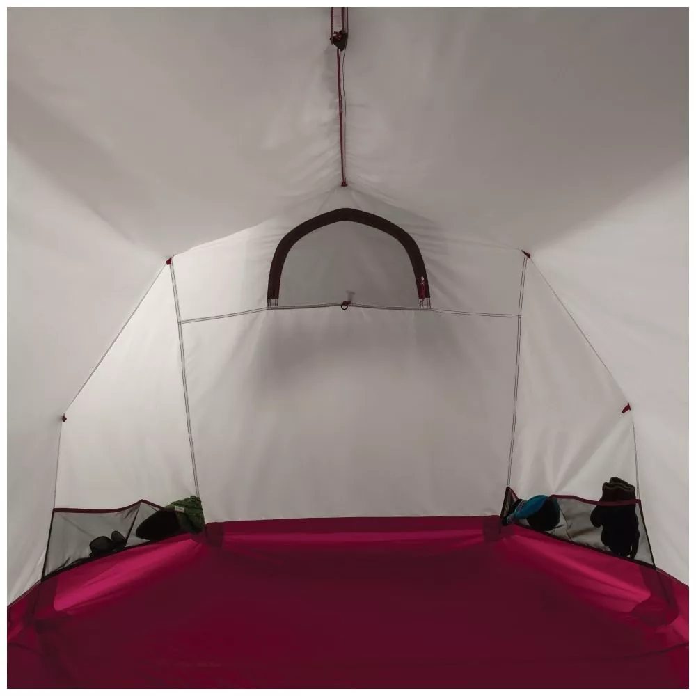 Ein geräumiger Innenbereich samt Apsis bietet jede Menge Platz zum Ausharren, bis ein Regenschauer endet. Die integrierte Bodenplane deckt den Apsisbereich ab, um die Ausrüstung vor nassem Boden zu schützen. Auf der Wäscheleine innen lassen sich nasse Sachen einfach trocknen. Überzeltbelüftungsöffnungen sind von innen erreichbar, so dass sich die Luftzufuhr einfach einstellen lässt, ohne nach aussen gehen zu müssen. Eine doppelwandige Tür mit Reissverschluss (Stoff/Netz) und Fenster dient der Luftzufuhr bzw. dem Schutz vor schlechtem Wetter und bietet Sichtschutz.