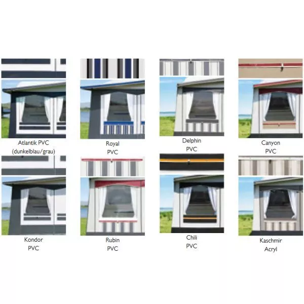 Die Individual- und Luxus-Klasse der dwt Vorzelte heisst Atelier Chalet. Denn hier kommt nichts von der Stange. Jedes dwt Atelier Vorzelt ist ein Unikat. Farbgestaltung, Material (PVC oder Acryl), Dachform (hier mit Vordach), Gestänge (Stahl- oder Alu), Vorderwand und Seitenwand-Gestaltung, Zelttiefe – du ganz allein entscheidest! Denn dieses Luxus-Vorzelt wird exklusiv für dich – von Hand und mit viel Liebe zum Detail – angefertigt.