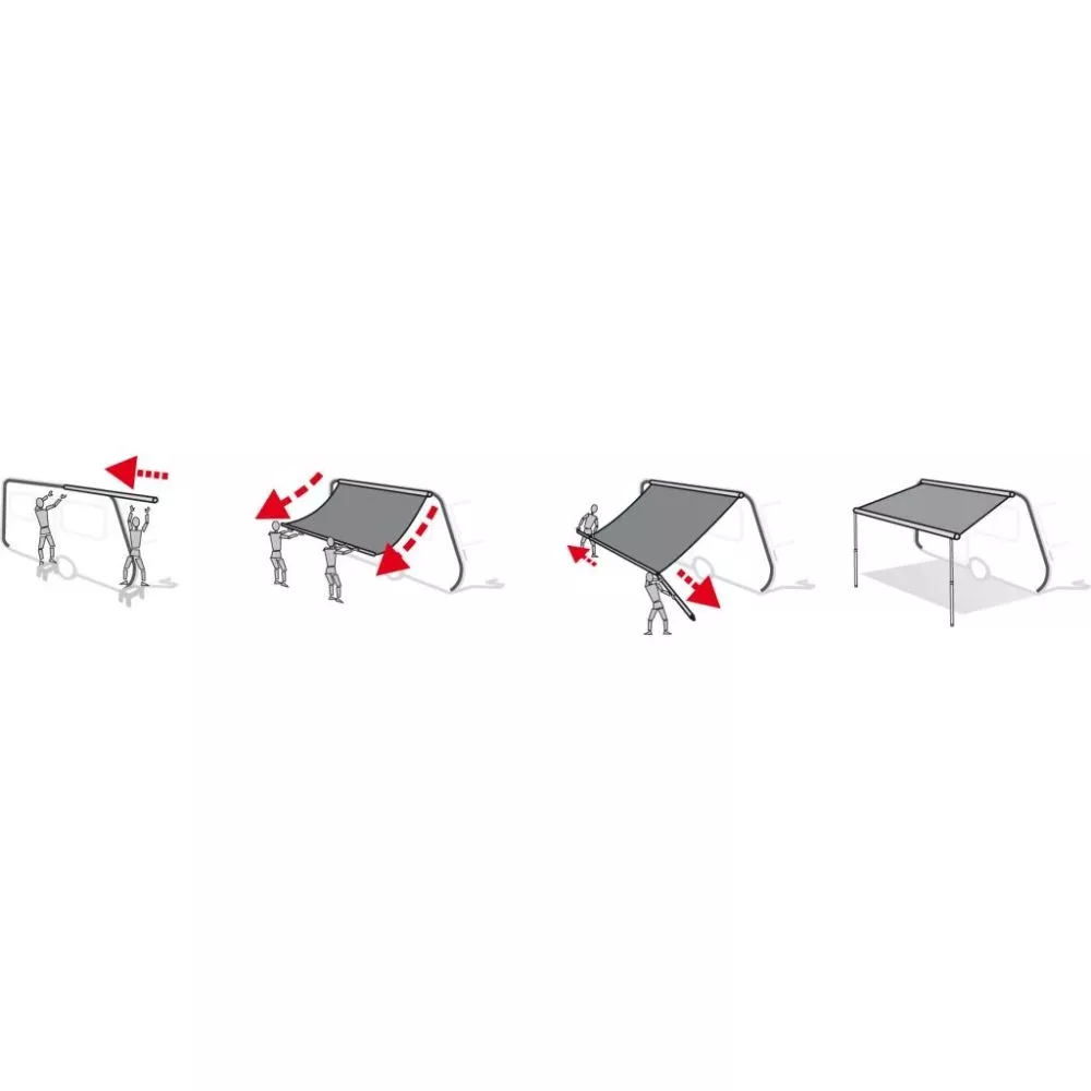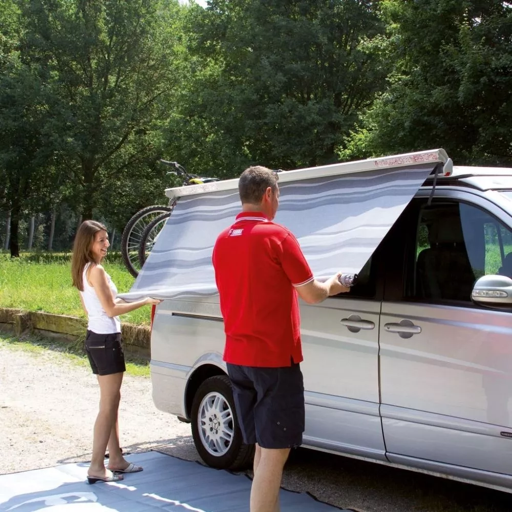 Die Markise Fiamma F35 Pro 250 schafft dir ca. 5,5 m² Schattenfläche direkt vor deinem Fahrrzeug. Sie ist für den Anbau an den Wohnwagen, Campingbus, Minivan, Geländewagen oder Kombi geeignet. Dank der verschiedenen Halterungen kannst du die Markise wahlweise an der Fahrzeugwand, am Dachträger oder an der Kederschiene anbringen.