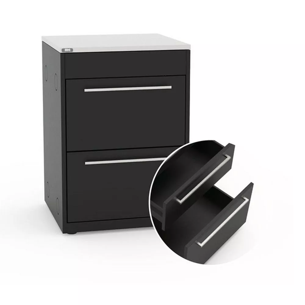 Das 2-fach Ladenmodul bietet mit einer Maximalkraft von 65 kg pro Laden die optimale Möglichkeit, schweres Grillzubehör aus Gusseisen und andere Grillaccessoires ordentlich und jederzeit griffbereit zu verstauen. Auch kleinere Hilfsmittel zum Grillen oder Kochen finden so ihren Platz in der BBQ Outdoorküche.