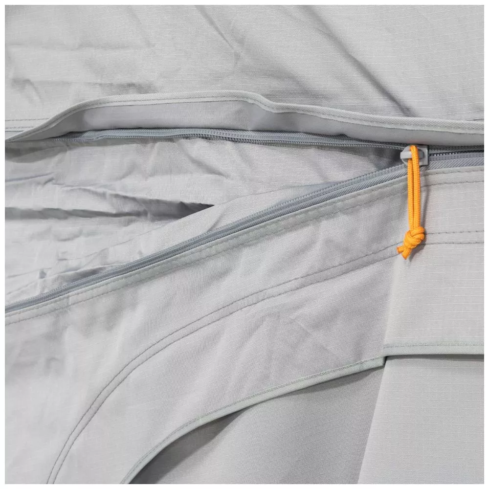 Alle Frontteile können per Reissverschluss komplett abgenommen oder ein Stück weit abgeklappt werden. Der so entstehende Verandaeffekt sorgt für eine gute Belüftung. Die zuverlässige Apex-Belüftung verbessert den Wohnkomfort zusätzlich und sorgt für eine bessere Luftzirkulation im Zeltinneren. Zudem trägt die grosszügige Raumhöhe zu einem einzigartigen Raumgefühl bei. Des Weiteren ist das Zeltdach des Dometic Rally Air Tour 330 mit dem Dual-Pitch-Roof System ausgestattet. Dieses ermöglicht, dass Wind und Regenwasser noch besser abfliessen, um so Wassersäcke oder ein Durchhängen des Daches zu vermeiden.