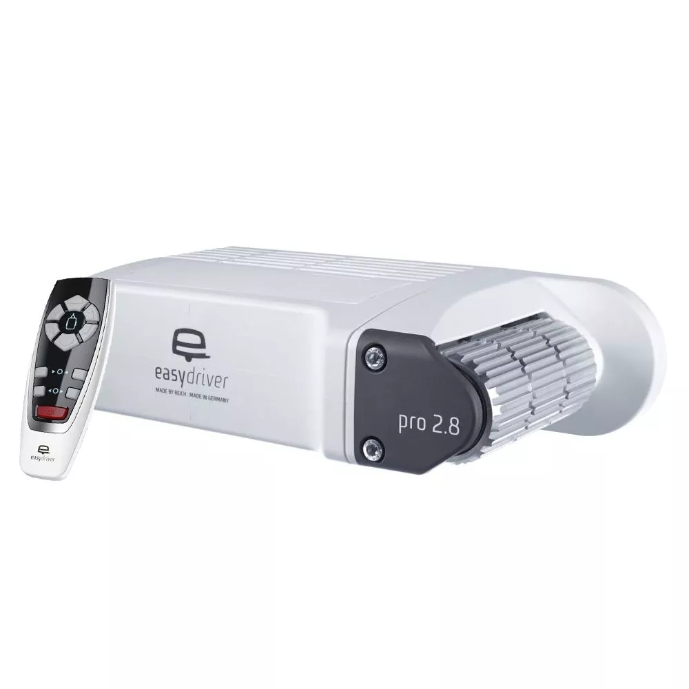 Mit der Wohnwagen-Rangierhilfe Reich easydriver pro 2.8 bewegst du ganz leicht deinen Doppelachser-Caravan. Diese Wohnwagen-Rangierhilfe unterstützt dich beim Rangieren auf engen Stellplätzen auf dem Campingplatz, aber auch zu Hause. Mit sanftem Anfahren geht es um jede noch so scharfe Kurve. Und das mit sicherem Halt, auch wenn es einmal steil wird. Der Rangierantrieb Reich easydriver pro 2.8 wird fest am Wohnwagen installiert. Zum Rangieren werden die jeweils linken und rechten Antriebseinheiten an die Reifen gekoppelt. Nach dem Rangiervorgang werden diese wieder von den Reifen entkoppelt. Mittels vier 12-Volt-Motoren wird der Wohnwagen angetrieben. Die mitgelieferte Fernbedienung sorgt für komfortables und sicheres Rangieren.