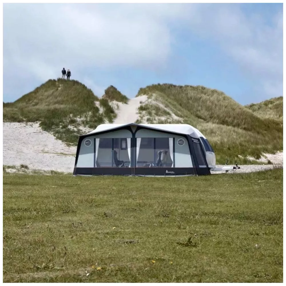 Mit einer vergleichsweise leichten Dachware ausgestattet, ist das Wohnwagenvorzelt Capri Coast von Isabella ideal fürs Reise- und Saisoncamping. Das atmungsaktive Isacryl-Gewebe ist leicht und sorgt für ein gutes Raumklima. Das macht sich besonders in südlichen Ländern positiv bemerkbar.